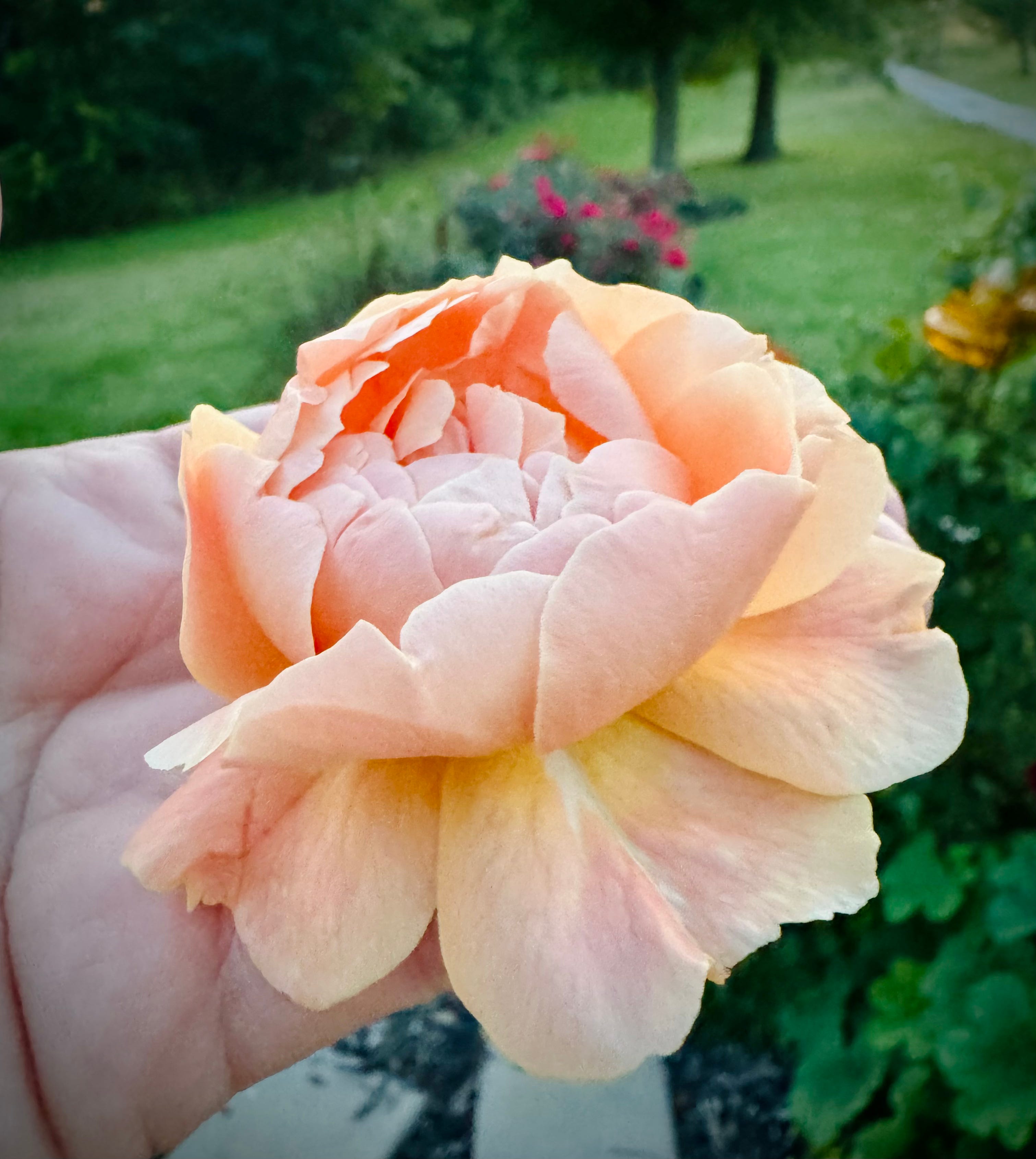 Roses are my favorite flowers. From the lucious red long-stemmed varieties to prettily petaled English roses, there’s a rose for every mood and moment. Of my preferred blooms, a rose named At Last stands out. With curling peach petals, it’s delicate in nature with a sweet scent. This rose’s thorns aren’t terrifying, nor does its petite stature make a proud statement in the landscape. Where other roses are eye-catching and bold, in color or fragrance or in their sprawling nature, the At Last is resilient and content just to be. When I look at the At Last roses I’ve planted and stop to bury my nose in their petals, I can’t help but feel peaceful and grateful.